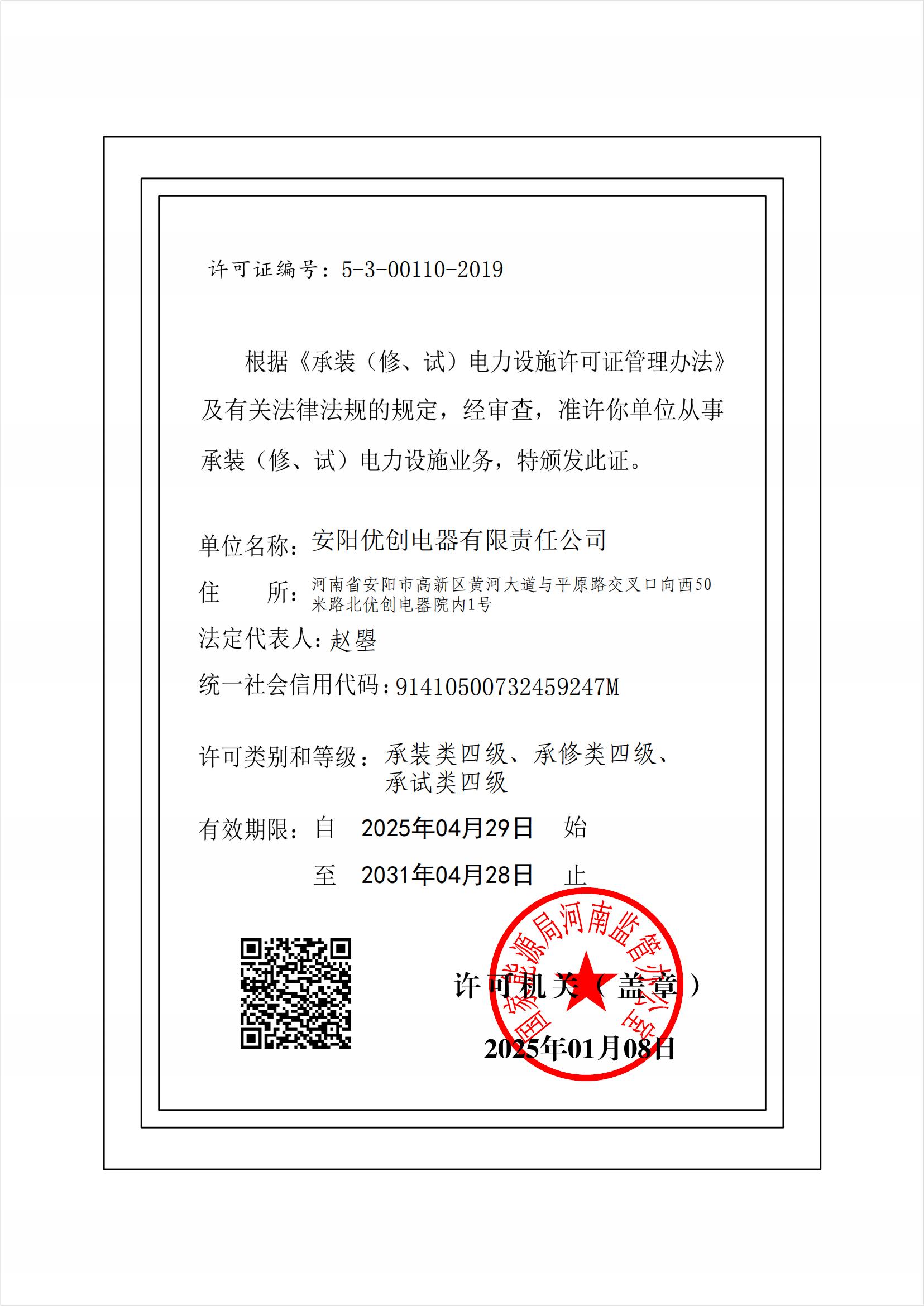 承裝電力設(shè)施許可證